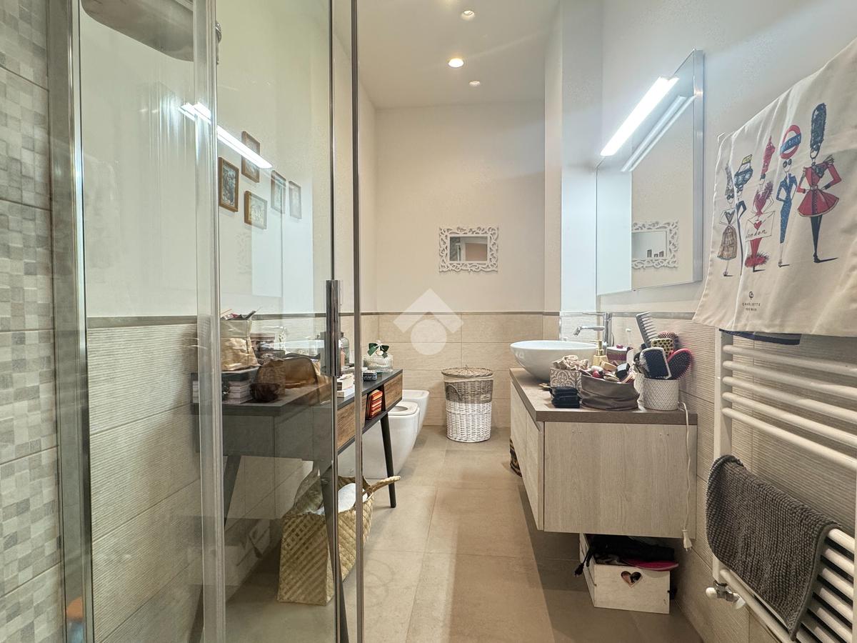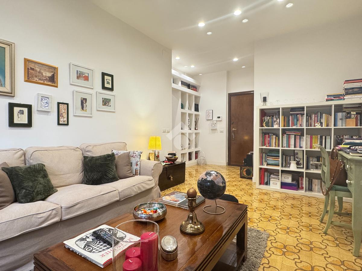L'ingresso conduce al soggiorno, ideale per momenti di relax, mentre la cucina abitabile con sala da pranzo è perfetta per cene conviviali. Proseguendo troviamo la camera da letto matrimoniale. Il bagno finestrato, funzionale e ben rifinito, completa la zona notte. Al balcone vi si accede da tutti gli ambienti e offre uno spazio esterno privato, perfetto per godersi l'aria aperta. La libreria in muratura aggiunge un tocco di eleganza e praticità.
